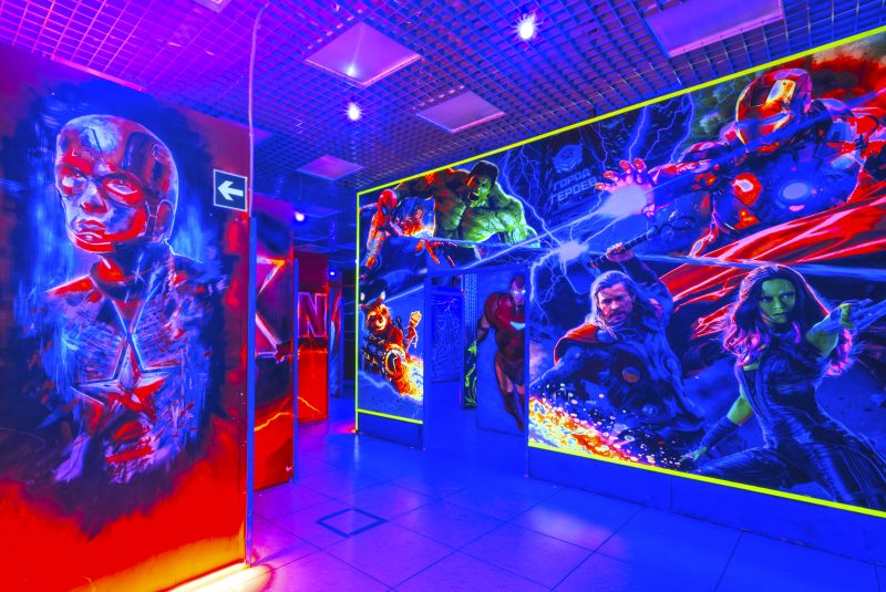 Игровая территория клуба представляет собой космическую базу оформленную в супергеройском стиле. Там можно встретить любимых персонажей из "Marvel", "DC", компьютерных игр и мультфильмов. Лазерный тир, виртуальная реальность и музей космических экспонатов дополняют антуражность площадки. Игровая зона одновременно вмещает до 30 игроков. При этом играть здесь можно и летом и зимой, не опасаясь капризов погоды.