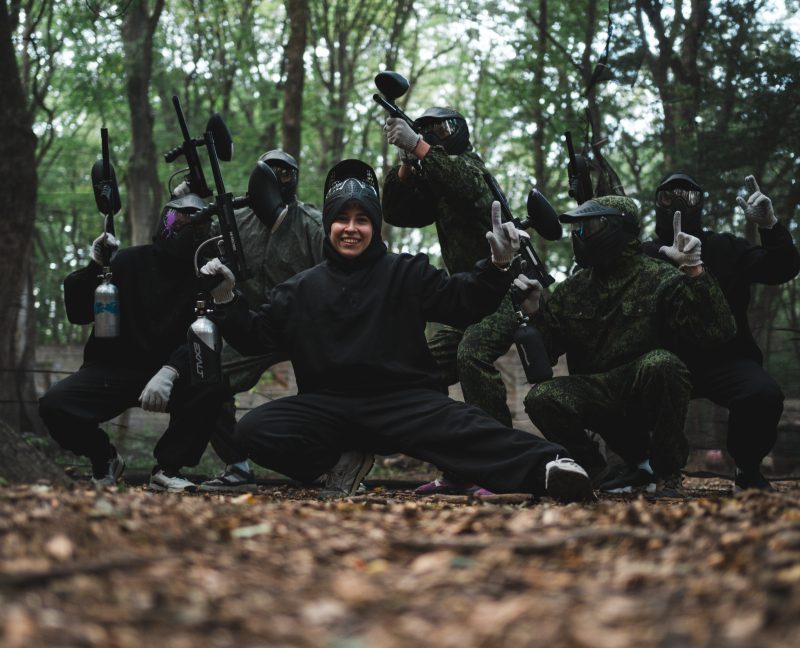 В стоимость игры в пейнтбол входят шары, защитный костюм + перчатки, прокатная маска, маркер.