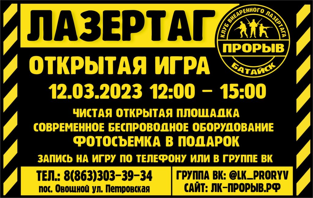 12.03.2023 состоится открытая игра, участие в мероприятии по предварительной записи/